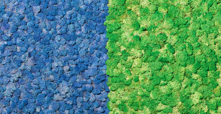 Stabilized Scandinavian dry moss in a blue and green wall panel as a vibrant piece of nature in the interior.