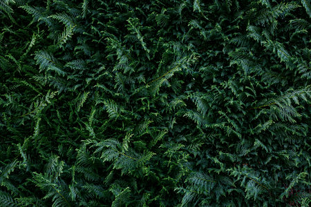 The lush green foliage of the juniper hedge, with its intricate textures and patterns, showcasing vibrant leaves and natural beauty, is ideal for backgrounds and nature-themed projects.