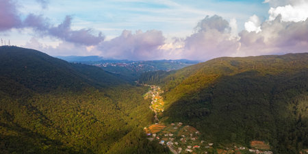 Aerial Landscape Of Nuwara Eliya Valley And Mountains In Sri Lanka