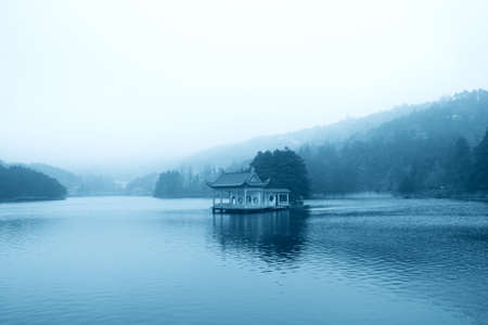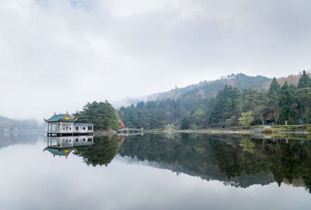 lake in fog, beautiful mount lu scenic area landscape, China