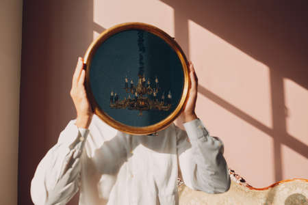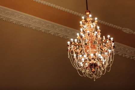 Old chandelier design and interior decoration ceiling and room light, close-up.