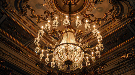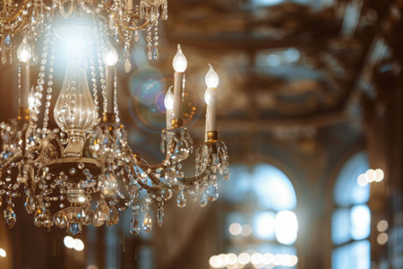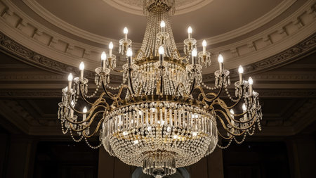 Elegant chandelier in a ballroom, adding a touch of luxury and sophistication