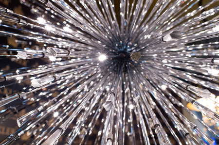 Beautiful crystal chandelier in luxury hotel interior. Selective focus.