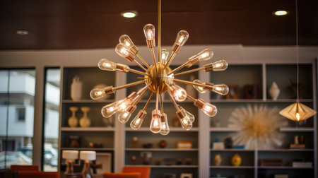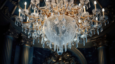 A sparkling chandelier hanging from the ceiling, adding a touch of elegance to the space Ai generated