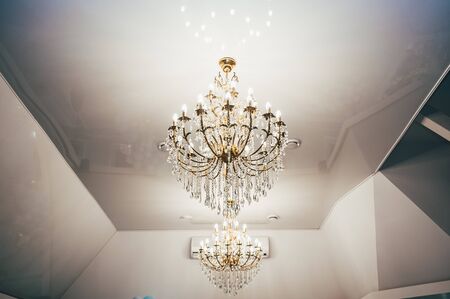 Expensive exquisite crystal chandelier in Victorian style indoor