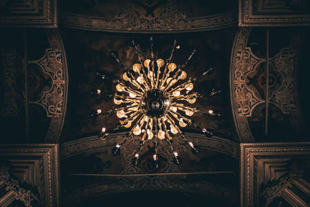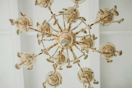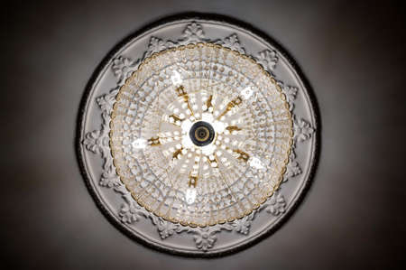Old chandelier design and interior decoration ceiling and room light, close-up.