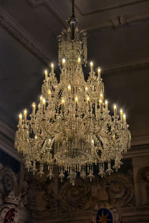 Vintage crystal chandelier in a royal palace. Luxury interior