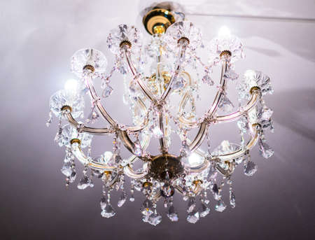 Expensive exquisite crystal chandelier in Victorian style indoor