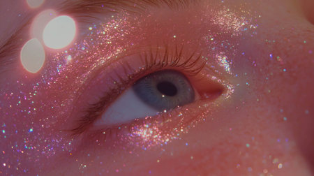 Sparkling pink glitter makeup beauty close-up for glamorous eye design