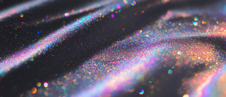 Holographic glitter texture creating a futuristic appeal on a dark background