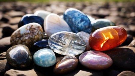 Jewel-toned stones in artistic composition, perfect for backgrounds and luxury branding