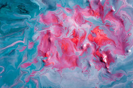 Abstract background of acrylic paint in blue and red tones. Copy space.