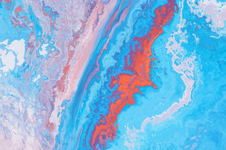 Close Up Colorful Blue Red White Fluid Pouring Abstract Art Acrylic Painting Texture Background
