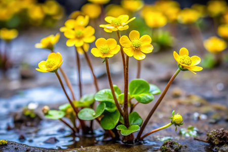 Caltha palustris, also known as marsh marigoldh marigold, common marsh marigoldh marigoldh marigold.