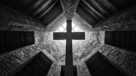 AI Generated. Cross in Historic Church Interior with Soft Lighting