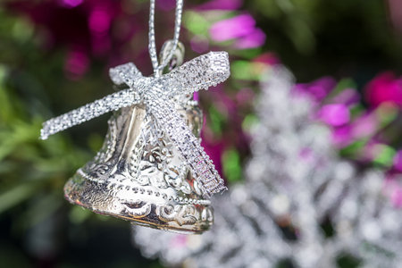 Glass big Christmas tree Christmas toy bell hanging on the Christmas tree.