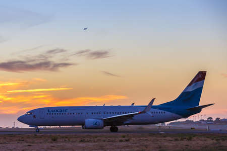 Faro, Portugal - September 25, 2021: Luxair Boeing 737-800 airplane at Faro airport (FAO) in Portugal.