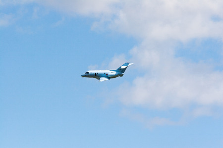 Zurich, Switzerland - July 19, 2018: Small private jet airplane preparing for landing at day time in international airport