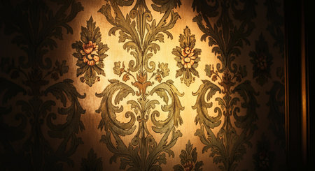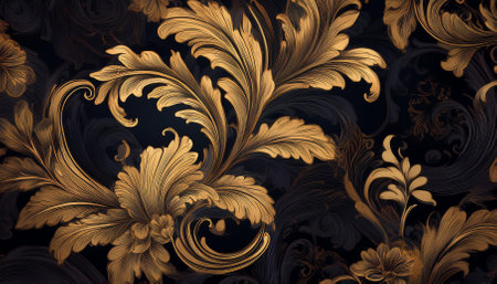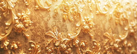 Luxurious and opulent golden baroque ornament patterns with intricate floral designs and detailed craftsmanship for traditional European wall art and antique background. Renaissance