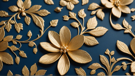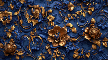 AI Generated. Opulent Gold and Dark Blue Ornate Floral Design