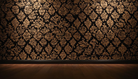 3d render of vintage wallpaper with wooden floor and wall background.