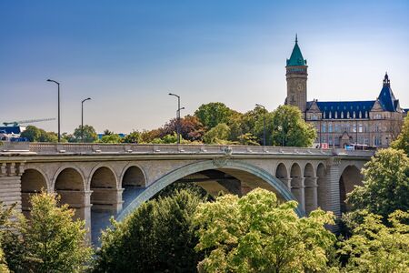 LUXEMBOURG CITY - LUXEMBOURG - JUNE 30, 2016: Sunny summer day in beautiful town Luxembourg, the capital city of the European country Luxembourg.