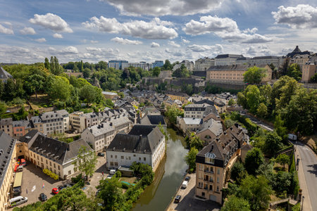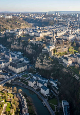 Luxembourg city, Luxembourg - July 15, 2019: A beautiful aerial view of Luxembourg city in Europe on a sunny summer day