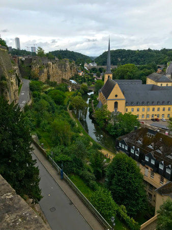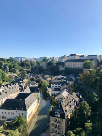 Luxembourg City, Luxembourg - August 30, 2019: View of the Old Town and Grund