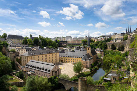 Luxembourg city, Luxembourg - July 16, 2019: Beautiful and cozy old town of the city of Luxembourg in Europe on a sunny summer day