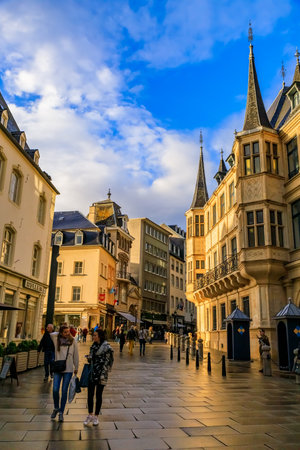 Luxembourg - October 21, 2017: Grand Ducal Palace, residence of the Grand Duke, and people on the street in Luxembourg, UNESCO World Heritage Site