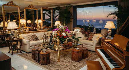 Experience the charm of this elegant living room featuring modern furniture and stylish decor. The warm colors and chic accessories create a cozy atmosphere.