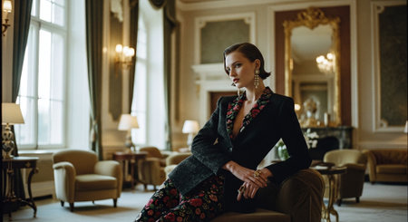Portrait of a beautiful fashionable woman in a luxurious interior. Retro style.