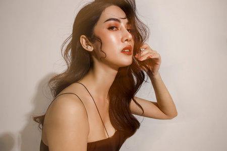 Portrait of beautiful sexy brunette woman. Asian girl.