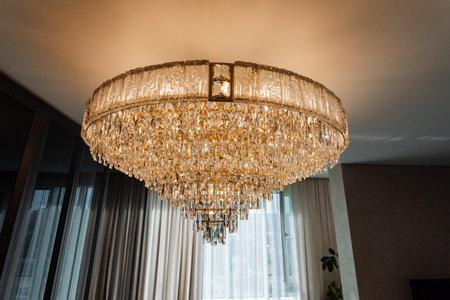 Expensive exquisite crystal chandelier in Victorian style indoor