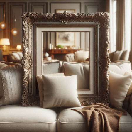 Luxury interior of a living room with a sofa and a picture frame