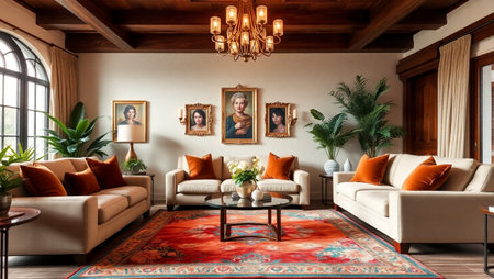 Elegant living room interior with rich textiles and classic decor