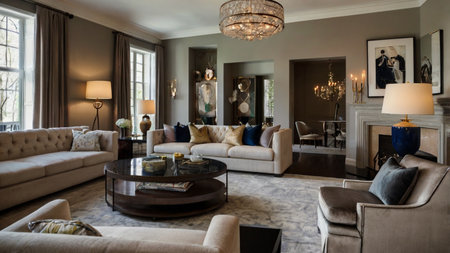 Elegant living room interior with fireplace and classic decor