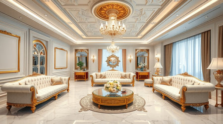 Luxury living room interior design in classic style. Nobody inside