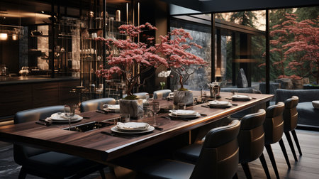 Interior design inspiration of Traditional Elegant style home dining room loveliness decorated with Wood and Crystal material and Centerpiece .Generative AI home interior design .