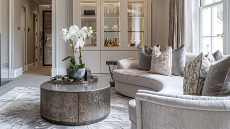 Experience the charm of this elegant living room featuring modern furniture and stylish decor. The warm colors and chic accessories create a cozy atmosphere.