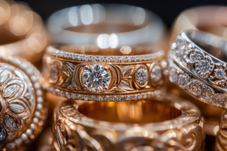 A captivating collection of intricately designed golden rings, showcasing exceptional craftsmanship, elegance, and the beauty of fine jewelry.