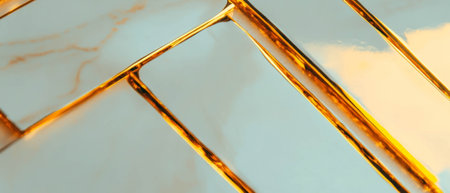 This stunning close-up image features intricate golden geometric patterns that reflect light beautifully, creating a captivating artistic look perfect for modern design.
