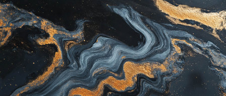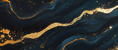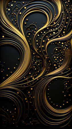 An AI-generated illustration of a black and gold abstract background featuring intricate swirling lines