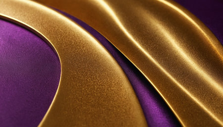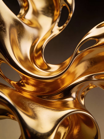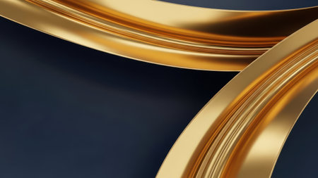 This image features elegant golden ribbons gracefully curving against a dark background. The ribbons have a smooth, shiny texture that reflects light, creating a sense of depth and dimension. The contrast between the golden hue and the dark backdrop emphasizes the richness and sophistication of the ribbons.