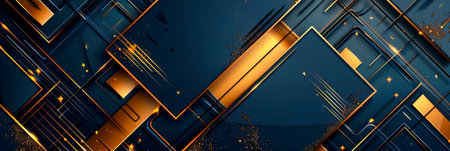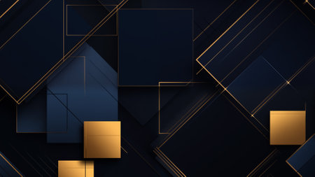 Elegant gold and dark blue theme exquisite dark blue background with gold lettering and geometric patterns. Generative AI