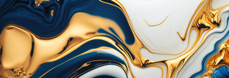 Abstract blue and gold paint background. Blue and gold liquid texture.