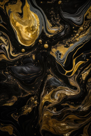 abstract background. Liquid paint, fluid art style. Black and gold colors. vertical background. AI generative. Background for the site or desktop.