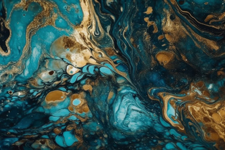 Gold and blue marbling abstract background. Generative ai