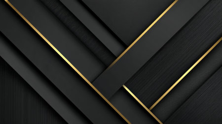 This stunning abstract background features sleek black surfaces with elegant gold accents. Perfect for design projects, branding, or any stylish visual needs.