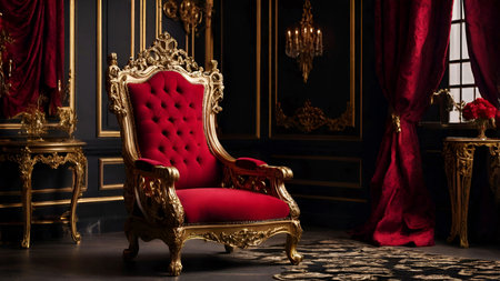 A luxurious dark interior with a tufted leather sofa and gold accents. Elegant and sophisticated design.